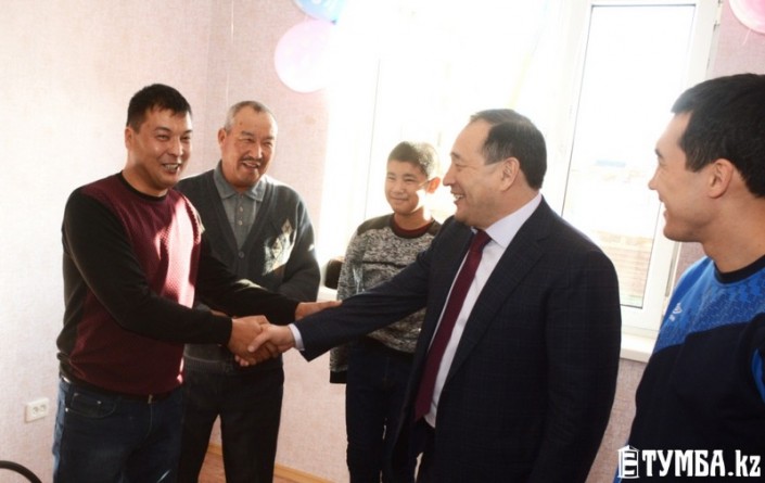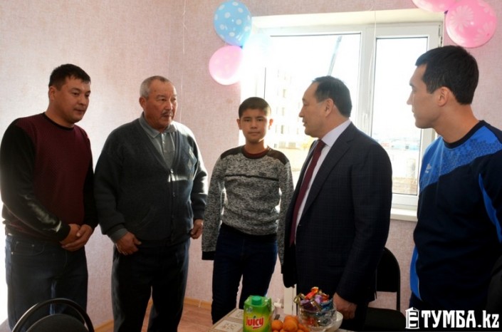 Поздравить отца и сына с новосельем приехали сам аким, а также олимпийский чемпион по боксу Адильбек Ниязымбетов.