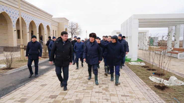 Аскар Мамин посетил строительные площадки Конгресс-холла, Дворца школьников, офисных зданий акимата, спортивного комплекса с бассейном, стадиона на 7 тысяч мест, драматического театра, областной научно-универсальной библиотеки, городского парка с аттракционами, центра "Ұлы дала Елі" и Музея Яссауи, а также проинспектировал ход реконструкции зданий Национального центра ремесленников Великого шелкового пути и Визит-центра.