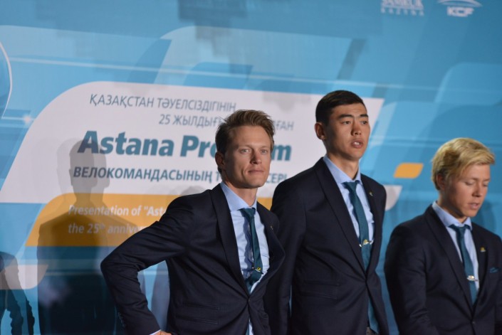 Собравшимся был представлен новый состав команды. Первым вышел лидер команды - итальянец Фабио Ару. Следом за ним на подиум поднялся ведущий казахстанский велогонщик Алексей Луценко. Всего в составе клуба 28 спортсменов. Из казахстанцев, кроме Луценко, в заявке - Жандос Бижигитов, Дмитрий Груздев, Арман Камышев, Бахтияр Кожатаев, Руслан Тлеубаев, Даниил Фоминых, Артем Захаров, Андрей Зей и Никита Стальнов. Среди 10 новичков представили двух интересных гонщиков, от которых ждут серьезной помощи для лидеров - Морено Мозер и Михаэль Вальгрен.