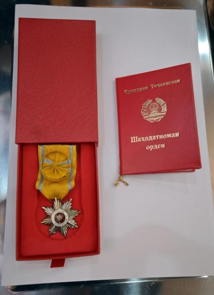 Посол Таджикистана в Казахстане Ибодзода Хайрулло вручил орден "Спитамен" I степени матери геройски погибшего пограничника Раджана Батрканова (Батырханова), передает Tengrinews.kz.