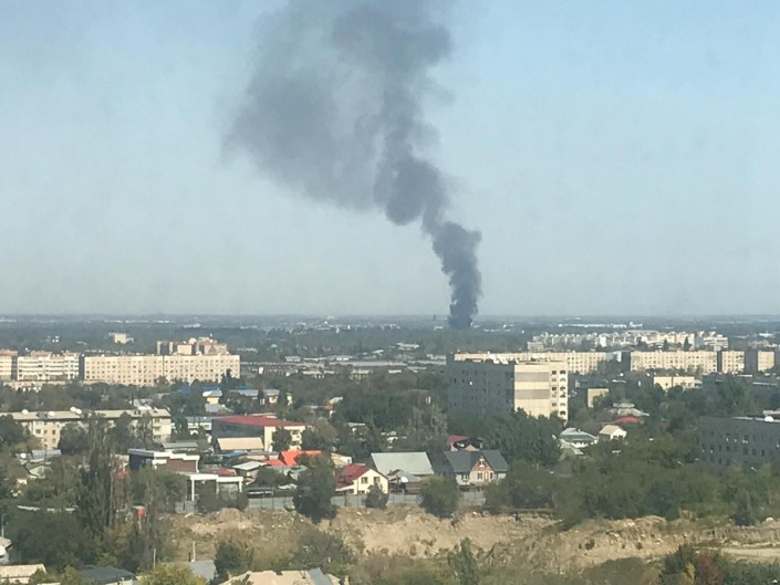 "17 сентября в 11:57 на пульт "101" поступило сообщение о пожаре в Жетысуском районе. Силы и средства направлены по повышенному номеру. По улице Ратушного, 84 А открытым пламенем горел мебельный цех с угрозой распространения на рядом расположенный производственный цех. На месте задействованы 20 единиц техники, 60 человек личного состава, 4 единицы поливомоечных машин, 2 эвакуатора, полиция - 20 человек, 3 единицы техники. Департаментом полиции произведено оцепление", - говорится в сообщении ДЧС.