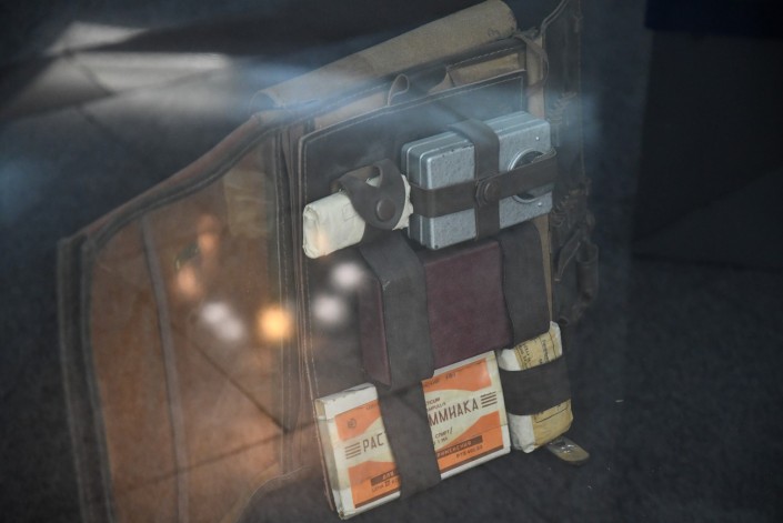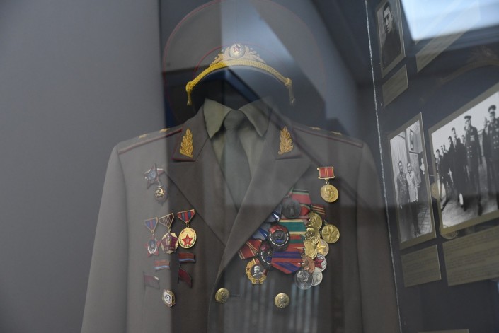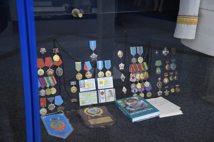 В музее можно увидеть шлем сержанта милиции Тажбенова, инспектора дорожно-патрульной службы ГАИ УВД Алма-Атинского горисполкома.