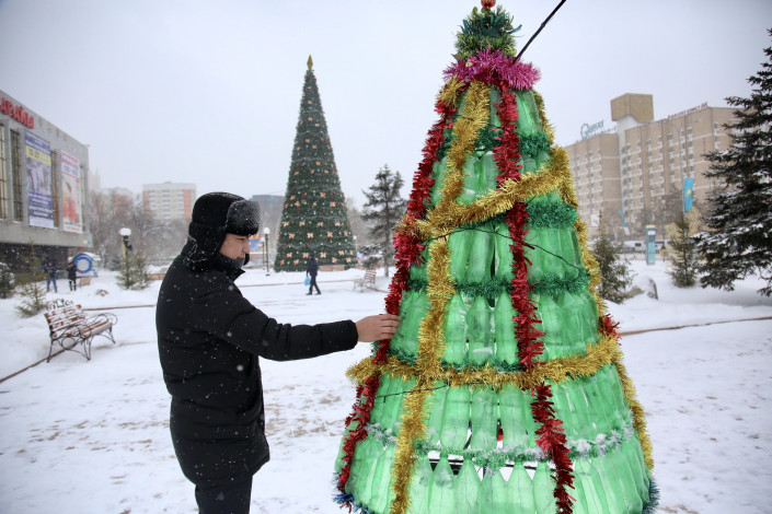 "Елка сделана из бутылок, а те в свою очередь из пластика, а он очень долго разлагается. И это замечательно, что этим отходам нашли такое вот применение. Мне кажется, что сегодня люди должны быть уже более осознанными и минимизировать свой вредный след на этой земле", - рассказала жительница города Нур-Султан Марина.