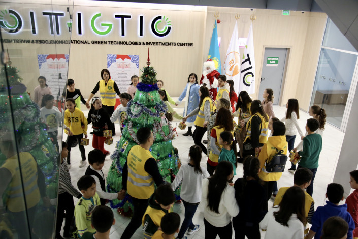 "Мне хочется поблагодарить всех участников этого проекта и поздравить с наступающим праздником. Эта красивая эко-елка сделана руками детей. Вы можете видеть на ней игрушки, которые также были сконструированы из вторичных материалов. Мы не хотим использовать живые елки. Мы, как экологи, выступаем за то, чтобы в стране меньше вырубалось деревьев, а больше было посадок. И если по стране будут появляться такие вот эко-елки, то это здорово отразится на нашей с вами природе", - заявил вице-министр экологии Примкулов.