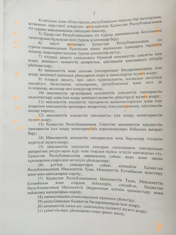 "Там чисто техническая ошибка. В оригинале документа этих ошибок нету. Потому что там вкладывается в компьютер, и когда он распечатывается, буква Қ идет без хвостика, как К. Буква Ә как А отображается. В программе "Адилет", к сожалению, такое чисто казахское искажение дает. Там с компьютерной программой проблемы скорее всего. Мне сейчас принесли оригинал, в нем с тем выставленным "Адилетом" документом различия есть, потому что когда программа читает, буквы искажаются. Я сам сторонник того, чтобы орфография и все поддерживалось", - сказал Арыстанбек Мухамедиулы, отметив, что в министерстве внимательно следят за чистотой языка. "Это не наша программа. "Адилет" - это общая программа для всех госорганов, где любые правовые решения обязаны публиковать. Мы сейчас будем обращаться к обладателям программы "Адилет", чтобы они усовершенствовали свою программу", - отметил Мухамедиулы.