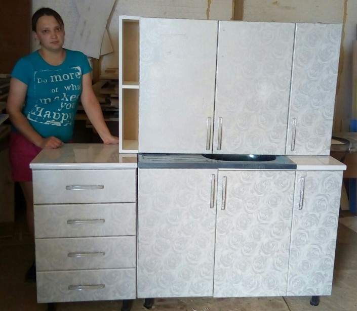 Супруги решили пустить деньги на расширение семейного бизнеса. Александр закупил фурнитуру для изготовления корпусной мебели. Кухонные гарнитуры, шкафы, тумбочки, кровати и прочая корпусная мебель производятся в Сергеевке, а реализуются по всей области. Цены на них одни из самых низких в регионе: например, тумбочка - от 5 000 тенге, а шкаф - от 35 000.