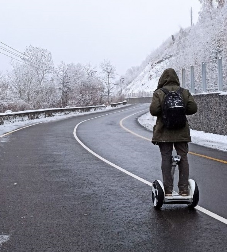 "Как-то специально к зиме самокаты я не готовил. Зимы у нас теплые, и дороги чистят нормально, поэтому ставить зимние или шипованные покрышки не вижу смысла. На проезжую часть дороги без особой надобности я не выезжаю. На тротуарах всегда еду медленно, все мои самокаты и сегвеи с завода едут не больше 25 километров в час, что является безопасным для меня и окружающих, особенно в зимнее время, когда местами встречается лед, а пешеходы в капюшонах и шапках, что ухудшает их связь с внешним миром", - рассказывает Дмитрий.