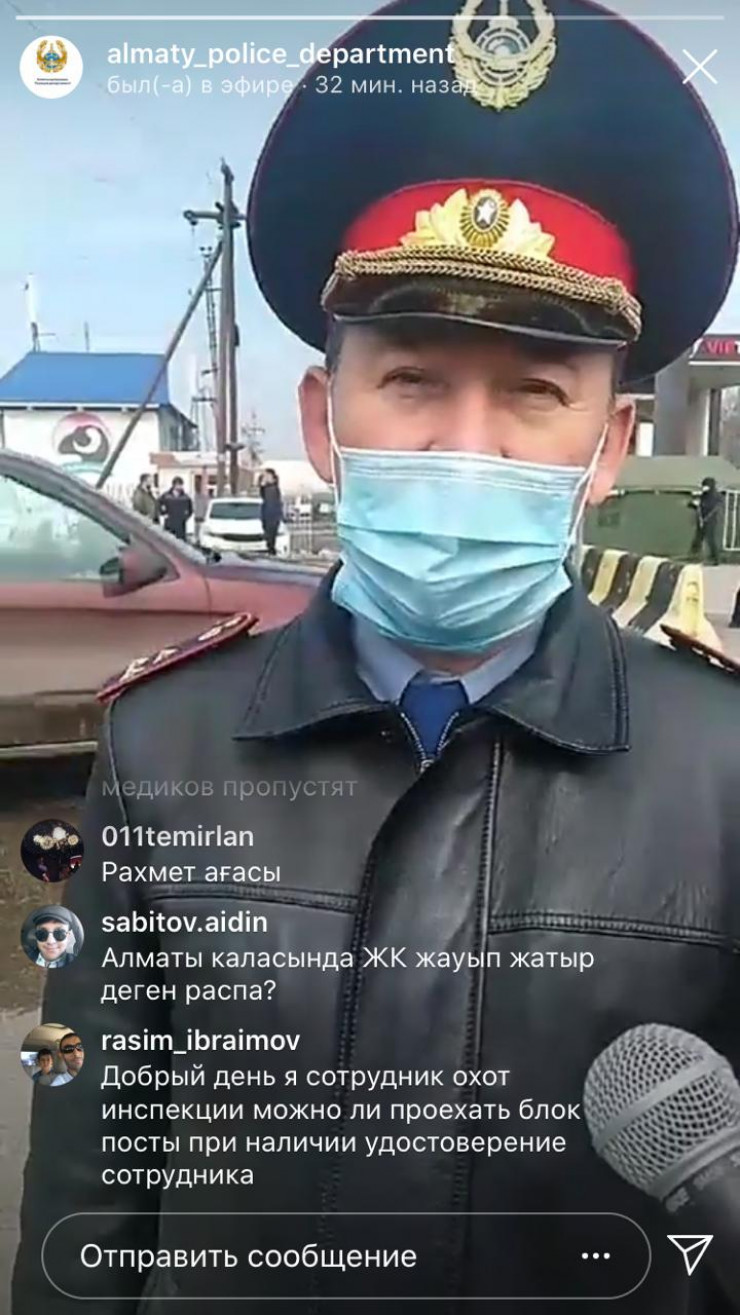 "Когда я здесь сам находился, ко мне подошел взрослый 60-летний мужчина. Он сказала, что его 80-летняя мама лежит в Талгарском районе. Попросил разрешение передать лекарства ей, так как в аптеках рядом с ней их нет. Мы в такие моменты, конечно, относимся с пониманием и разрешаем", - сказал начальник УАП.