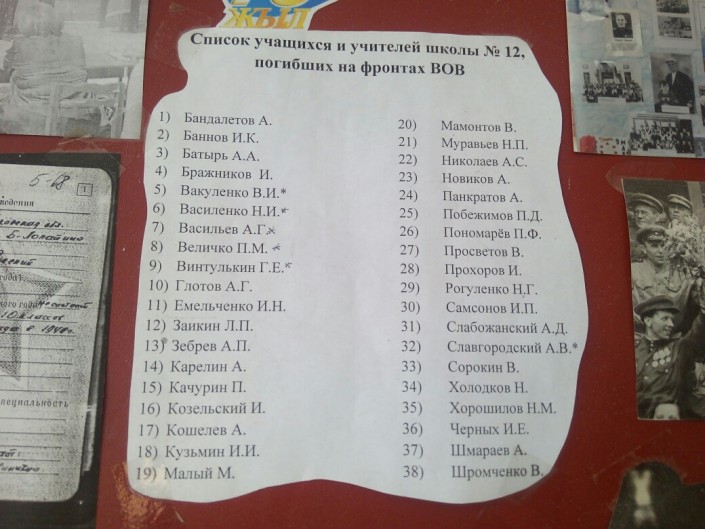 "Мы собирали историю наших героев по крупицам из архивов. Ведь с той войны никто из них не вернулся, да и родственников уже нет в живых. Раньше к нам в школу частенько приходила пожилая дама, которая могла часами любоваться на доску почета, где запечатлены старые снимки и памятник, который воздвигли в честь школьников-фронтовиков", - рассказывает заведующая библиотекой школы Наталья Орлова.
