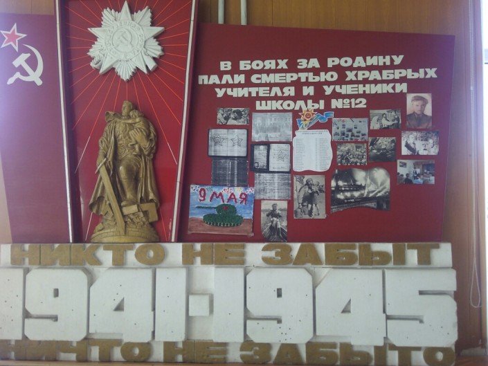 Памятник, о котором рассказала сотрудница школы, воздвигнут во дворе учебного заведения. Скромный монумент в честь погибших школьников руководство школы построило народными силами. Идея об установке обелиска возникла в первые же годы мирного времени. Но на это нужны были деньги.