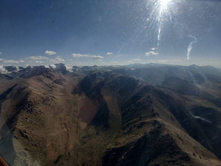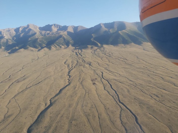 Кадры были сделаны пресс-службой ДЧС региона во время облета местности. Сотрудники ведомства проводили опорожнение моренного озера № 18.