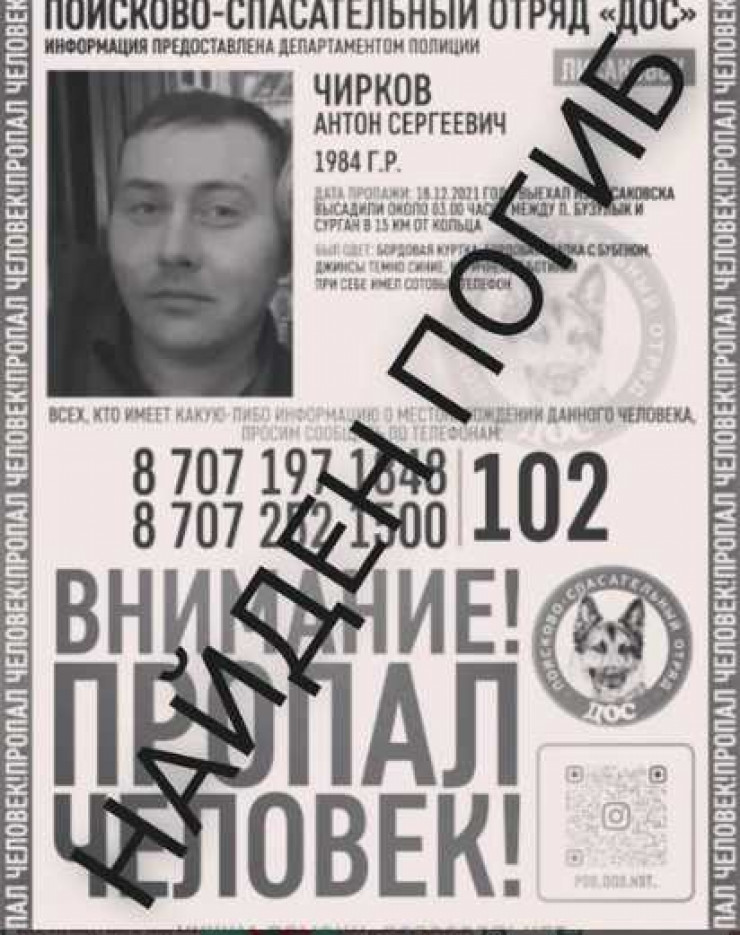 По данным портала, информацию о смерти пропавшего распространили волонтеры поисково-спасательного отряда "Дос". Мужчина пропал в декабре 2021 года.