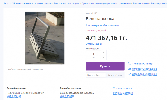 Отметим, что на сайте satu.kz похожая велопарковка стоит чуть более 471 тысячи тенге.
