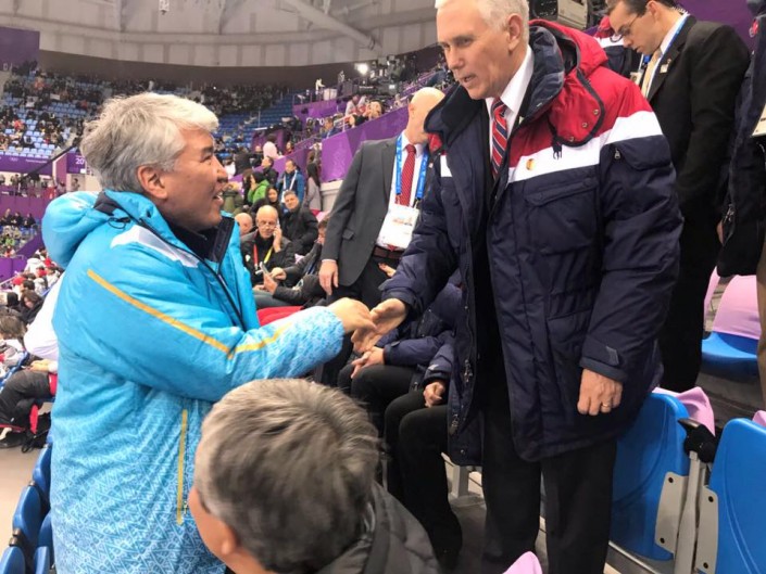 Министр культуры и спорта РК Арыстанбек Мухамедиулы встретился с вице-президентом США Майклом Пенсом и президентом Республики Корея Муном Чжэ Ином на Олимпиаде в Пхенчхане, передает корреспондент Tengrinews.kz.