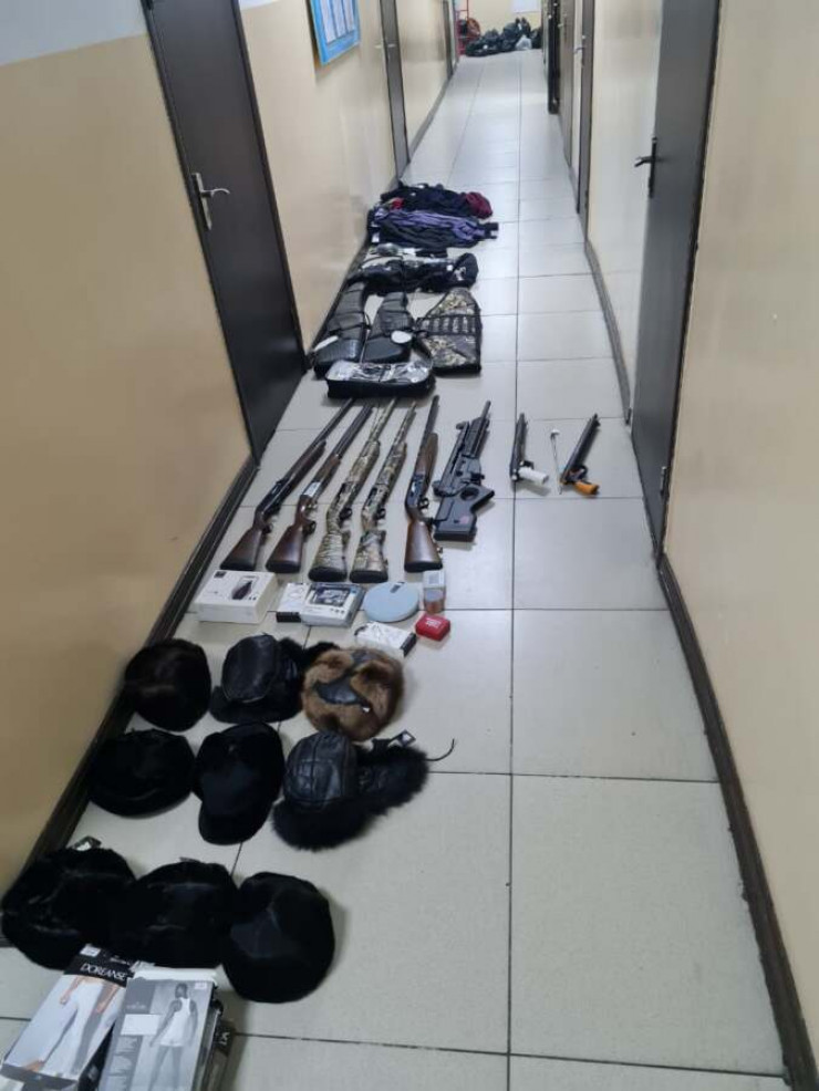 18 марта при проведении оперативной разработки сотрудниками Департамента криминальной полиции МВД и ДП Алматы задержан алматинец, у которого изъято нарезное ружье модели SL-8 223-го калибра, пять гладкоствольных ружей: модели FAIR 12-го калибра, две единицы модели Ata Arms 12-го калибра, две единицы модели FRENSHI 12-го калибра, а также два ружья для подводной охоты, похищенные из охотничьего магазина "Корган" в Алматы в период январских событий.