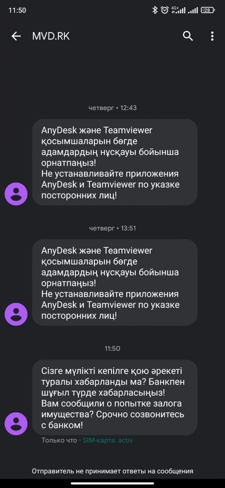 В настоящее время разосланы сообщения абонентам Kcell с текстами следующего содержания: