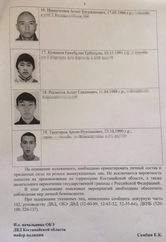 "По нашим данным, нападавшие - радикальные приверженцы нетрадиционных религиозных течений. Практически все они - жители города и области. Что касается распространенных фотографий - среди них как лица, которые предположительно участвовали в нападении, так и возможные организаторы, а также лица, представляющие оперативный интерес в связи с событиями и не только", - пояснил официальный представитель МВД РК Алмас Садубаев. Эти ориентировки казахстанцы распространяли посредством WhatsApp.