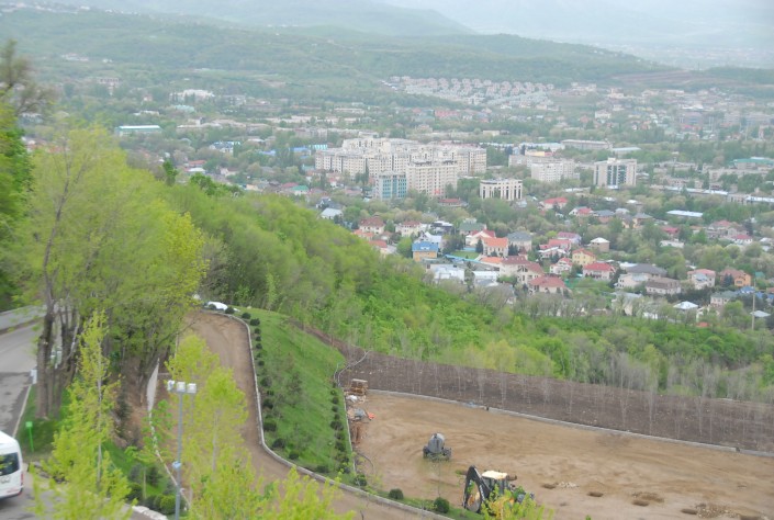 Начались работы по укреплению склона и реконструкции Коктобе. На восточной и северной стороне горы пробурили и забетонировали 395 скважин глубиной от 9 до 24 метров, чтобы удержать грунт от сползания.