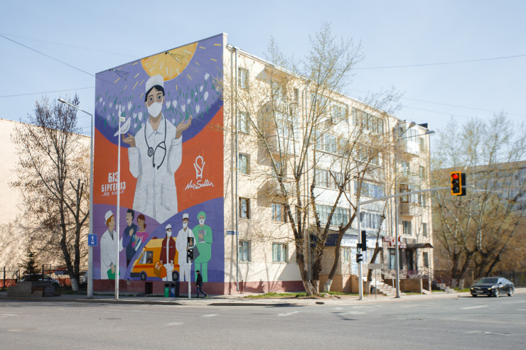 Ранее казахстанские активисты посвятили врачам муралы на зданиях в Нур-Султане и Алматы