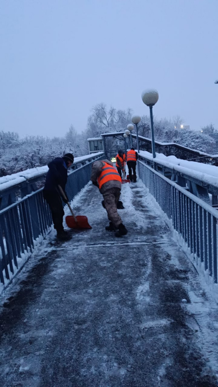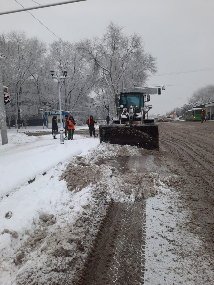 С утра на дорогах города работают 524 единицы спецтехники и около 1240 дорожных рабочих. В районных акиматах и подрядных предприятиях организовано круглосуточное дежурство по контролю за производством работ по уборке снега", - добавили в городском акимате.