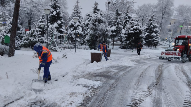 Отмечается, что с 6 утра было организовано 17 колонн по сгребанию снега в сопровождении патрульных машин полиции. Силами 32 снегопогрузчиков и 70 самосвалов производится вывоз снега.