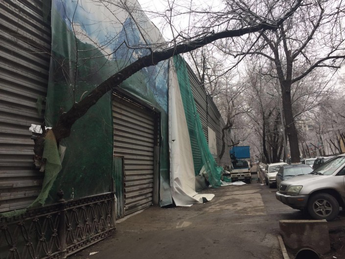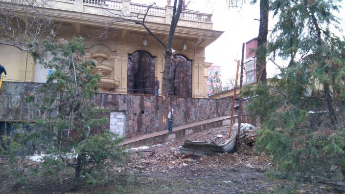 Начали демонтаж строительного забора у ресторана в парке 28 панфиловцев в Алматы Фото из аккаунта Дмитрий Шишкин в Facebook.com