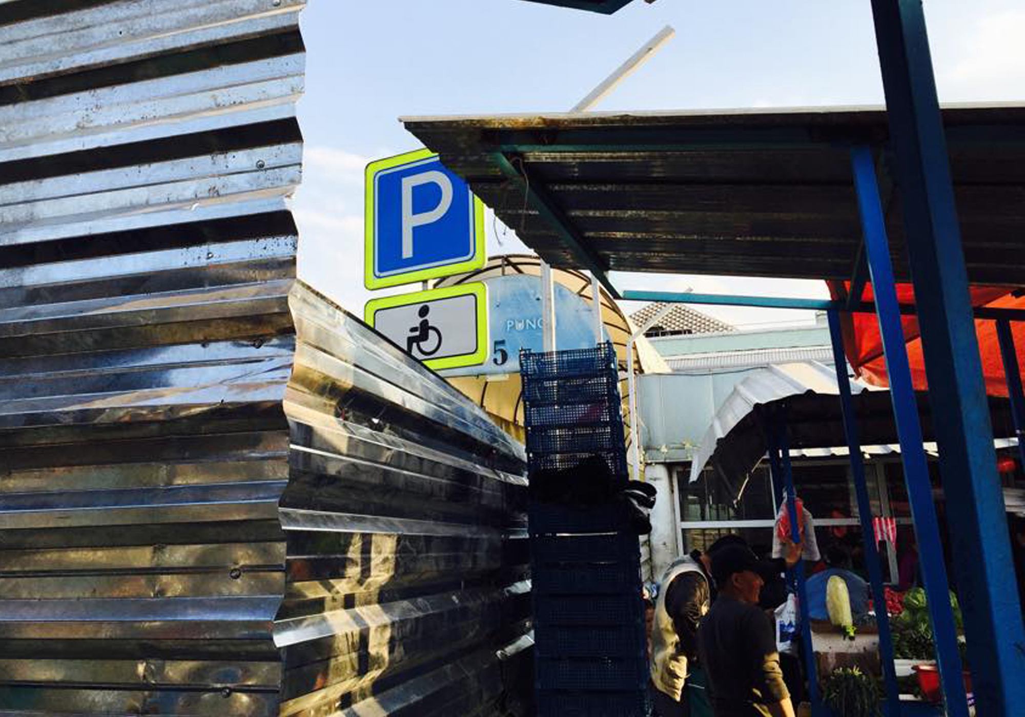 Сейчас на Зеленом базаре со стороны улицы Макатаева установлено железное ограждение. За ним уже можно увидеть новые знаки правил дорожного движения, в частности, знак "Парковка для людей с ограниченными возможностями". Отметим, что овощные ряды открыты только частично, а контейнеры с продуктами питания работают в обычном режиме.