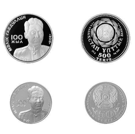Памятные монеты "100 лет М. Габдуллину" из серии "Выдающиеся события и люди" выполнены из серебра качества proof номиналом 500 тенге и из сплава нейзильбер номиналом 50 тенге.