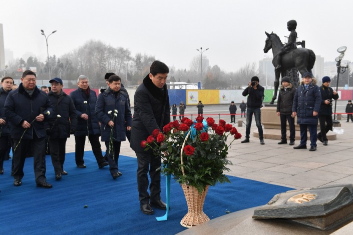"Народ Казахстана долго боролся за независимость" - цветы возложили к монументу в Алматы Аким Алматы Бауыржан Байбек. Фото пресс-службы акима Алматы.