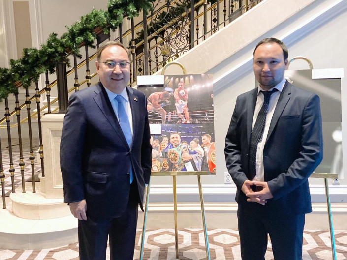 Конечно же, приглашенные не могли пройти мимо выдающихся казахстанцев Димаша Кудайбергена и Геннадия Головкина, которых также не раз фотографировал Турар Казангапов.