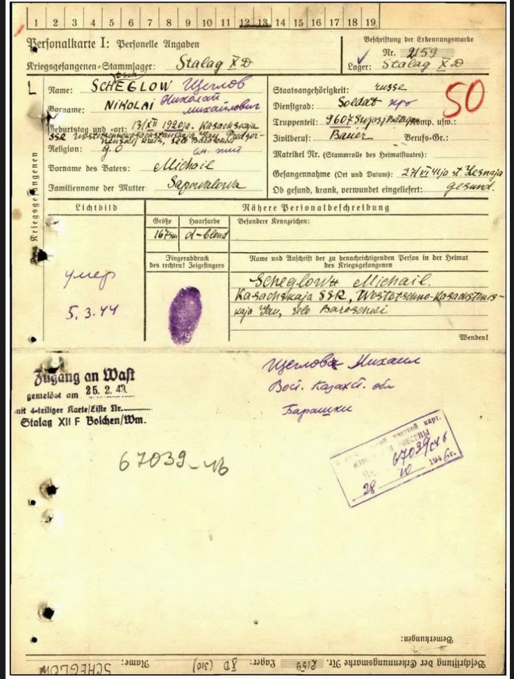 На этом же кладбище были идентифицированы еще два захоронения казахстанцев: Щеглова Николая Михайловича, 13.12.1920, уроженца Восточно-Казахстанской области, село Барашки и Кособокова Александра Ивановича, 02.03.1921, уроженца Октябрьского района Северо-Казахстанской области.