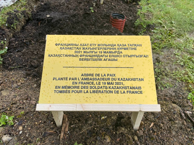 В рамках визита посла Казахстана Жана Галиева по региону Большой Восток в небольшой коммуне Вальруа (департамент Мерт и Мозель) состоялась церемония возложения памятных венков и посадка Дерева мира у мемориала "Стелла" в честь советских солдат, павших при освобождении Франции от фашистских захватчиков.