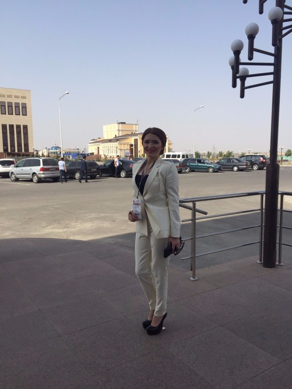 Дизайнер Айжани Нурланова в женском костюме собственного производства