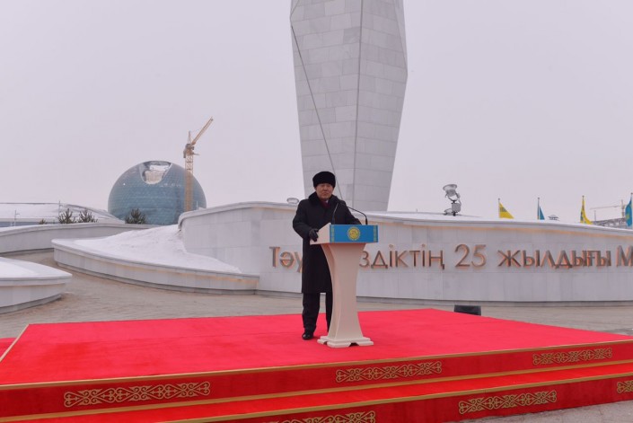 "Характерно, что он устанавливается в районе EXPO-2017. Со следующего года сюда будут приходить миллионы людей со всех концов света, будут смотреть выставку. Конечно, не пройдут этот монумент и будут помнить, что Казахстану исполнилось 25 лет", - сказал Глава государства.
