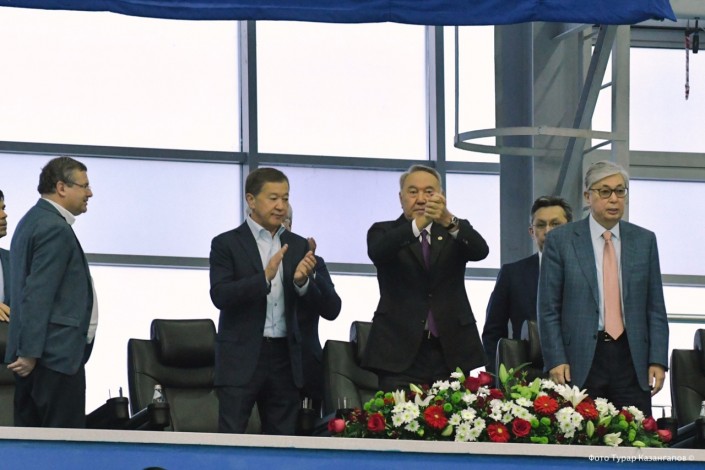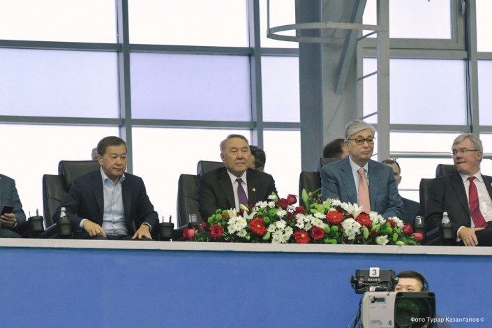Президент прибыл на игру в сопровождении главы Казахстанской федерации тенниса Булата Утемуратова. Также матч посетил спикер Сената Касым-Жомарт Токаев.
