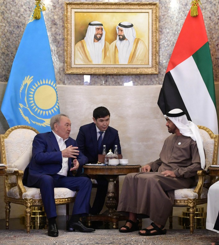В свою очередь наследный принц Мухаммед бен Заид Аль Нахаян поблагодарил Нурсултана Назарбаева за принятие приглашение посетить ОАЭ и особо подчеркнул роль Казахстана в деле установления межконфессионального согласия и диалога в мире.