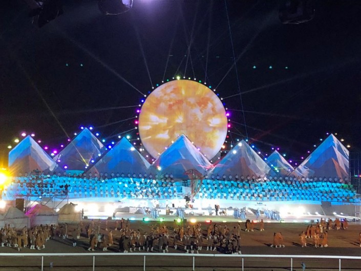 В церемонии открытия были задействованы танцевальные коллективы. Различные спецэффекты, а также трюки всадников поразили зрителей церемонии. В центре арены была установлена сцена в виде пиков гор, на которых изображались то скачущие лошади, то орнамент, то пейзаж степей.