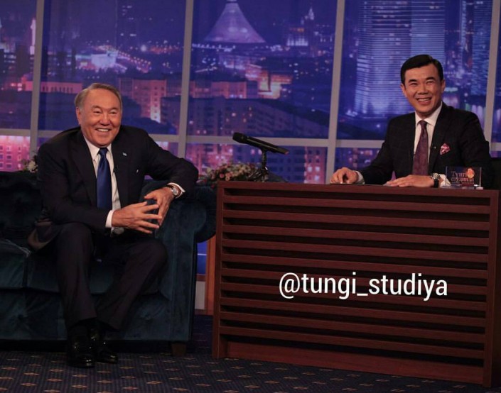 Назарбаев пришел в гости к Коянбаеву на "Түнгі студияда"