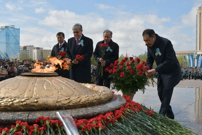 "У меня отец воевал в составе второго Белорусского фронта. В январе 1942 года он был призван. В феврале 1944 года на территории Польши был ранен. Мой дядя, Касым Болтаев, меня назвали в честь него, похоронен в деревне Трубино Ржевского района Тверской области. Погиб во время Ржевской битвы. В нашей семье особенно отмечают этот праздник", - сказал председатель Сената Парламента РК Касым-Жомарт Токаев.