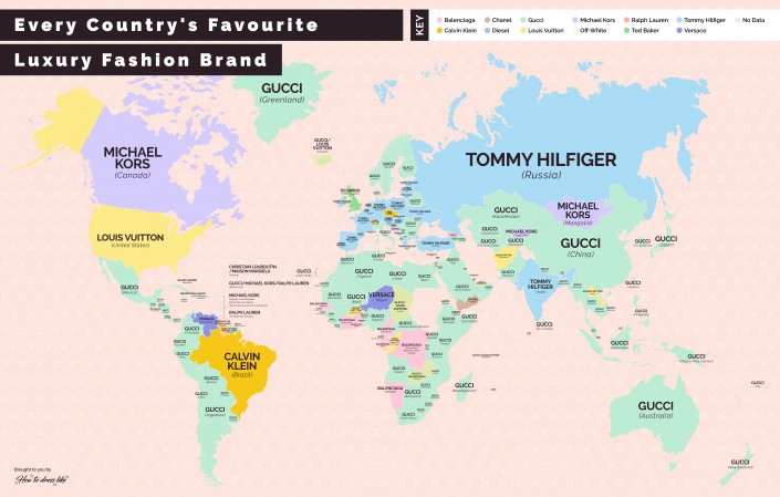Сервис How to dress like определил, какие люксовые бренды наиболее популярны в разных странах мира. Исследование опубликовано на сайте платформы, передает Tengrinews.kz.