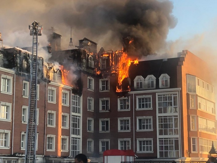 Накануне вечером начался пожар в элитном ЖК "Британский квартал" в Нур-Султане. К моменту прибытия пожарных в 19:46 горела кровля жилого дома.