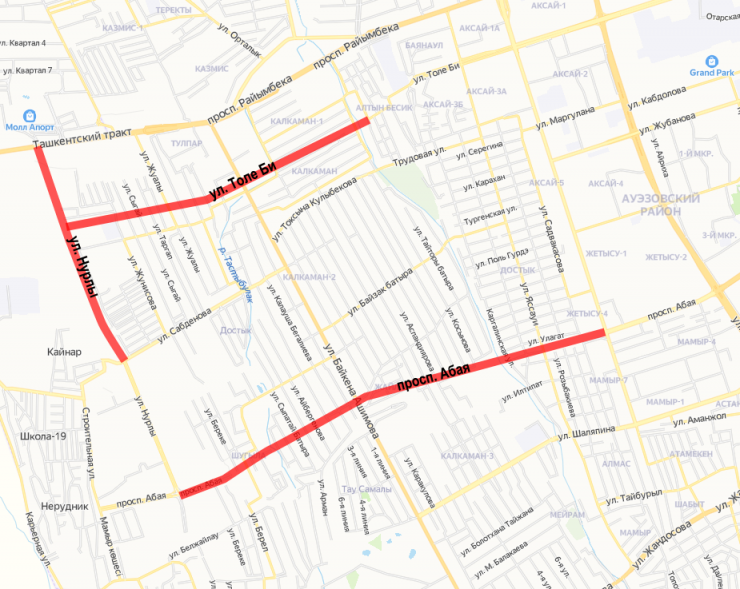С удлинением Толе би в акимате надеются на уменьшение заторов и разгрузку соседних улиц - Райымбека, Абая и Жандосова.