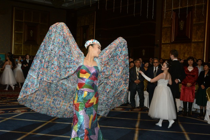 На форуме впервые в Казахстане было представлено платье птицы - символа программы "Рухани жаңғыру". Уникальное платье сшито впервые в Казахстане. Автор проекта - известный модельер и руководитель дома моды Тарбия Айдымбаева. Наряд "Рухани жаңғыру" является синтезом национального и современных стилей.