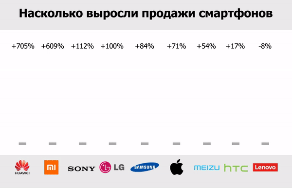 Продажи Xiaomi за год выросли в шесть раз, Huawei - в семь раз.