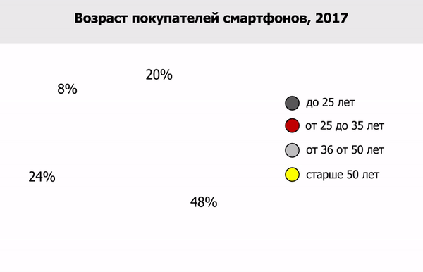 Но число самых молодых покупателей быстро растет. В прошлом году - больше чем в три раза. Отчасти это объясняет рост продаж именно недорогих смартфонов. Ведь студенты, которые сами покупают себе гаджеты, обычно выбирают современные бюджетные модели.
