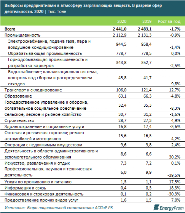 В 2020 году выбросы предприятий в атмосферу в Казахстане составили 2,4 миллиона тонн загрязняющих веществ - на 1,7 процента меньше, чем годом ранее.