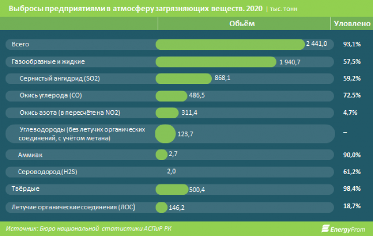 Из 2,4 миллиона тонн выброшенных в атмосферу загрязняющих веществ было уловлено 93,1 процента.