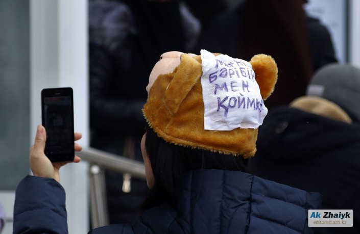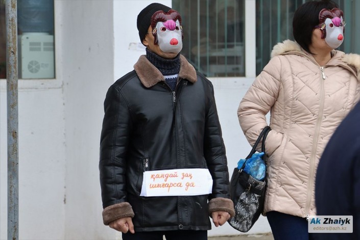 В среду в Атырау у здания местного ЦОНа по проспекту Сатпаева активисты устроили флешмоб в знак протеста против новых правил временной регистрации граждан, сообщает "Ак Жайык". Недовольные люди вышли на улицу в масках баранов и с различными лозунгами в руках.