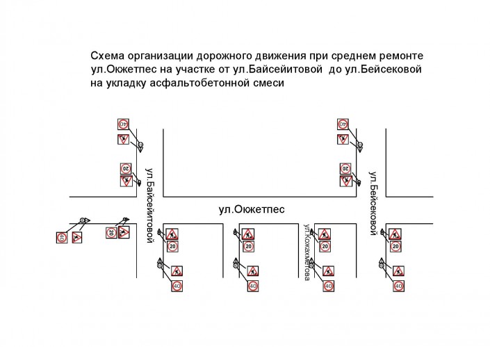 В частности, с 9 по 31 июля ожидается перекрытие движения на улице Б. Бейсекбаева, участок от улицы Тархана до проспекта Абая.