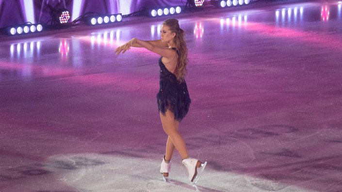 На льду выступали фигуристы со всего мира. Это пятое подобное шоу в Казахстане, и первое - без Дениса. Выступления открыли массовой постановкой под авторскую песню самого спортсмена - She wont be mine.